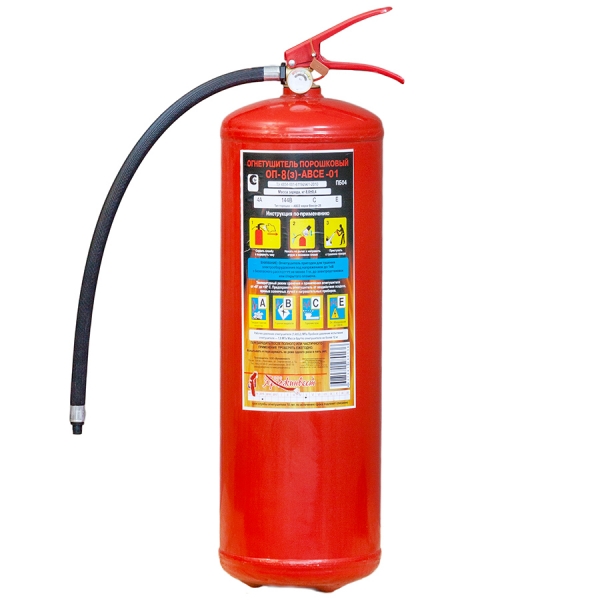 Порошковый огнетушитель ОП-8 (з) предназначен для тушения нефти, тлеющих материалов, металлов с их сплавами, а также электроустановок под напряжением менее 1000 В. При этом принцип тушения таким огнетушителем основан на так называемом «связывании» кислорода в результате воздействия порошка на очаг пожара.