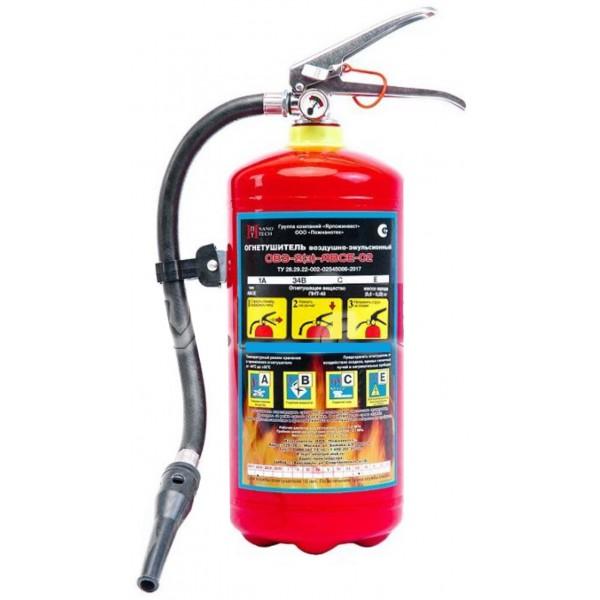 Огнетушитель ОВЭ-2(з)-АВЕ — высокоэффективный современный воздушно-эмульсионный огнетушитель с тонкораспыленной струей (ОВЭ), предназначенный для тушения пожаров класса "А" (твердые горючие вещества) "B" (горючие жидкости) "Е" (электрооборудование находящиеся под напряжением до 1000В) выполненный в корпусе из нержавеющей стали.<br>
