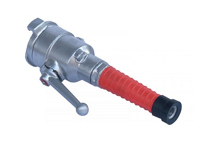 Ручной пожарный ствол РСП-70 с возможностью создания сплошной или распыленной струи с постоянным углом факела и функцией перекрытия потока воды и сменным насадком.