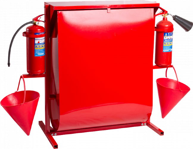 Стенд пожарный с бункером предназначен для хранения песка (оснащен специальным ящиком), двух огнетушителей и другого навесного оборудования (в наличии крючки для установки оборудования). В стандартную комплектацию входят: лом, багор, лопата, два ведра, два огнетушителя по выбору потребителя (поставляется отдельно). Поставляется без комплекта.