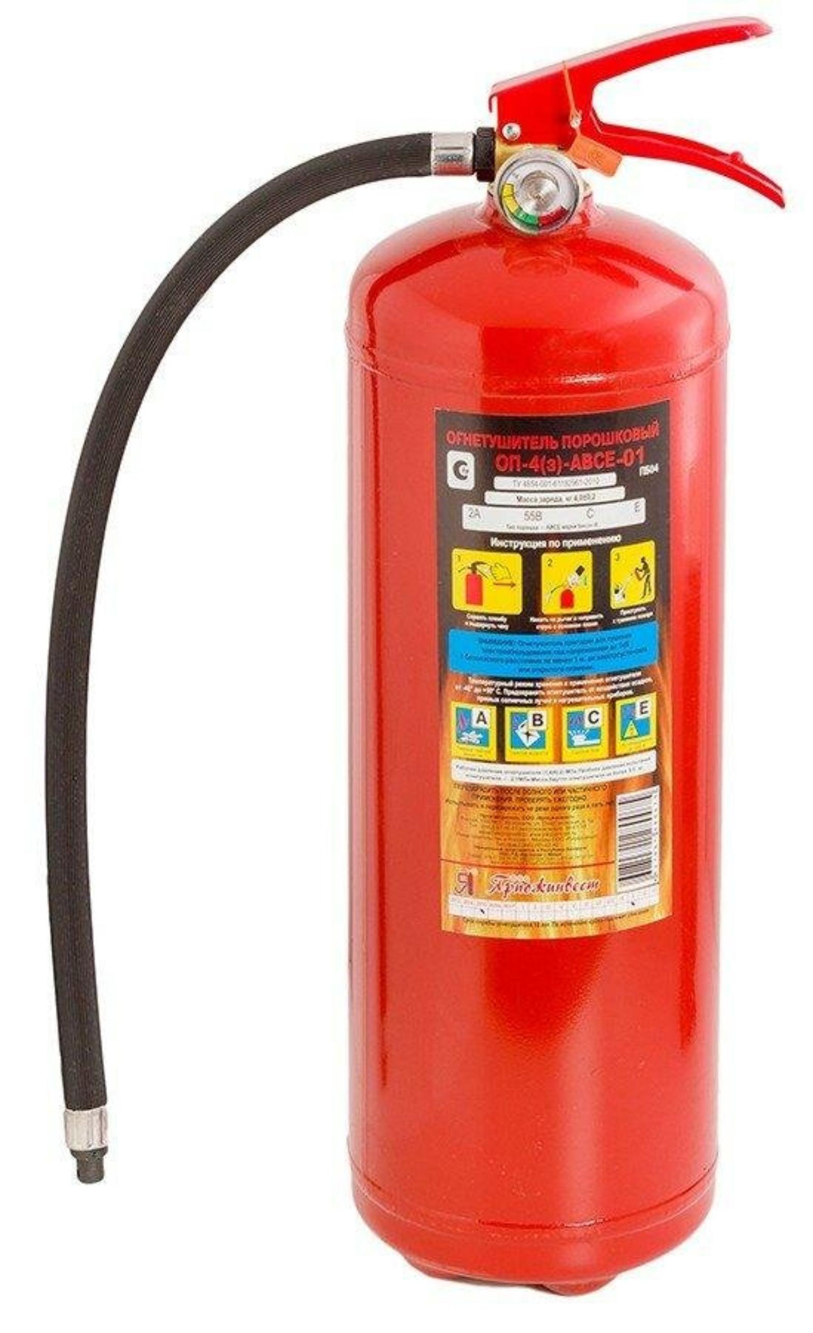 Порошковый огнетушитель ОП-4 является наиболее распространенным, в виду оптимального сочетания его стоимости, размеров, веса и огнетушащей способности. Данный огнетушитель могут использовать почти все категории населения, особенно это актуально при дефиците персонала мужского пола.
